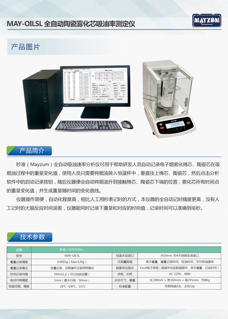 秒准(Mayzum)全自动电子烟雾化芯吸油速率分析仪MAY-OILSL