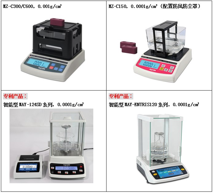 密度精度 | 0.001 g/cm3 | 0.0002 g/cm3 | 0.0001g/cm³ | 0.0001 g/cm3 | |