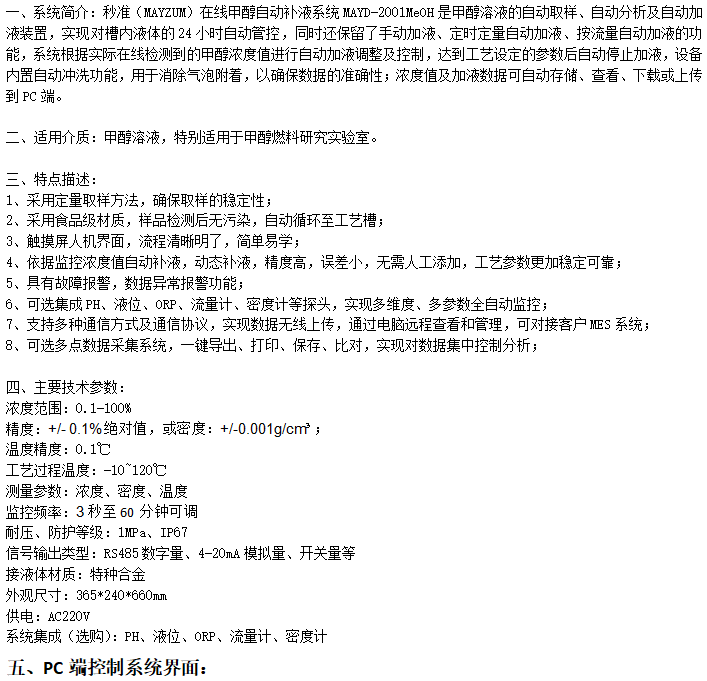 Array ( [id] => 2933 [module_id] => 10 [cate_id] => 292 [title] => 在线甲醇浓度监控仪检测仪 [subtitle] => [style] => [status] => 1 [hidden] => 0 [link_url] => [target] => 0 [author] => handler [author_type] => admin [keywords] => 在线甲醇浓度监控仪,在线甲醇浓度检测仪,在线工业酒精浓度仪,在线乙醇浓度测试仪 [description] => 在线甲醇浓度监控仪,在线甲醇浓度检测仪,在线工业酒精浓度仪,在线乙醇浓度测试仪 [note] => 秒准(MAYZUM)在线甲醇自动补液系统MAYD-2001MeOH是甲醇溶液的自动取样、自动分析及自动加液装置,实现对槽内液体的24小时自动管控,同时还保留了手动加液、定时定量自动加液、按流量自动加液的功能,系统根据实际在线检测到的甲醇浓度值进行自动 [identifier] => [hits] => 1312 [good_hits] => 0 [bad_hits] => 0 [post_date] => 1666257003 [modify_date] => 0 [thumb_id] => 2581 [istop] => 1 [isvouch] => 1 [isbest] => 1 [langid] => zh [points] => 0 [ip] => 183.13.104.219 [replydate] => 0 [taxis] => 0 [htmltype] => cateid [tplfile] => [uid] => 0 [seotitle] => 在线甲醇浓度监控仪检测仪 [price] => 49000 [free] => 0 [ifspecial] => 0 [promotion_start] => 1666195200 [promotion_end] => 1667145600 [freeshipping] => 0 [weight] => 0 [virtual] => 0 [thumb] => Array ( [files] => Array ( [id] => 2581 [title] => 组3 [filename] => upfiles/202210/20/aebe77953d822e7e4.jpg [thumb] => upfiles/202210/20/2581.thumb.jpg [postdate] => 1666257045 [ftype] => jpg [uid] => 0 [flv_pic] => [dir] => ) [gd] => Array ( [big] => upfiles/202210/20/2581_big.jpg [n2] => upfiles/202210/20/2581_n2.jpg ) ) [propic] => Array ( [0] => Array ( [files] => Array ( [id] => 2584 [title] => 组4 [filename] => upfiles/202210/20/a8cf5c1ccf489f4b2.jpg [thumb] => upfiles/202210/20/2584.thumb.jpg [postdate] => 1666257059 [ftype] => jpg [uid] => 0 [flv_pic] => [dir] => ) [gd] => Array ( [big] => upfiles/202210/20/2584_big.jpg [n2] => upfiles/202210/20/2584_n2.jpg ) ) [1] => Array ( [files] => Array ( [id] => 2583 [title] => 组2 [filename] => upfiles/202210/20/ac5de828b81d3f533.jpg [thumb] => upfiles/202210/20/2583.thumb.jpg [postdate] => 1666257058 [ftype] => jpg [uid] => 0 [flv_pic] => [dir] => ) [gd] => Array ( [big] => upfiles/202210/20/2583_big.jpg [n2] => upfiles/202210/20/2583_n2.jpg ) ) [2] => Array ( [files] => Array ( [id] => 2582 [title] => 组1 [filename] => upfiles/202210/20/a1d1d2e75fed8698c.jpg [thumb] => upfiles/202210/20/2582.thumb.jpg [postdate] => 1666257058 [ftype] => jpg [uid] => 0 [flv_pic] => [dir] => ) [gd] => Array ( [big] => upfiles/202210/20/2582_big.jpg [n2] => upfiles/202210/20/2582_n2.jpg ) ) [3] => Array ( [files] => Array ( [id] => 2585 [title] => 组5 [filename] => upfiles/202210/20/a4431b7e441c26368.jpg [thumb] => upfiles/202210/20/2585.thumb.jpg [postdate] => 1666257060 [ftype] => jpg [uid] => 0 [flv_pic] => [dir] => ) [gd] => Array ( [big] => upfiles/202210/20/2585_big.jpg [n2] => upfiles/202210/20/2585_n2.jpg ) ) ) [model] => https://item.taobao.com/item.htm?spm=a21dvs.23580594.0.0.4fee3d0dughCbb&ft=t&id=688421581733 [content] => [_cate_] => Array ( [id] => 292 [identifier] => zaixianyetimidujianceyi [langid] => zh [cate_name] => 在线液体密度浓度计 [parentid] => 282 [module_id] => 10 [tpl_index] => [tpl_list] => [tpl_file] => [if_index] => 0 [taxis] => 220 [status] => 1 [if_hidden] => 0 [keywords] => [description] => [ifspec] => 0 [note] => [psize] => 12 [inpic] => [linkurl] => [target] => 0 [ordertype] => id:desc [subcate] => [ico] => [small_pic] => [medium_pic] => [big_pic] => [seotitle] => ) )