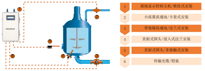 秒准MAZ-Ra300在线成分分析仪检测探头具有非接触直射式、浸入式法兰式、卡箍式、螺纹式和流通池式等多种安装方式,且触液材质可根据工况需求进行定制。