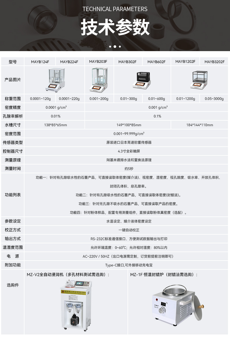 MAYB3202P大量程粉末冶金比重计 孔隙率 含油率测试仪